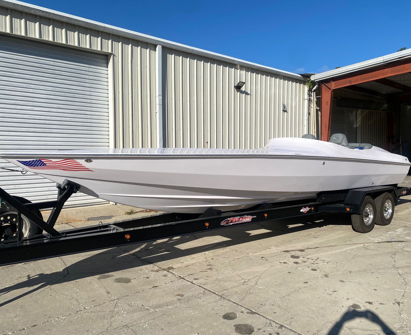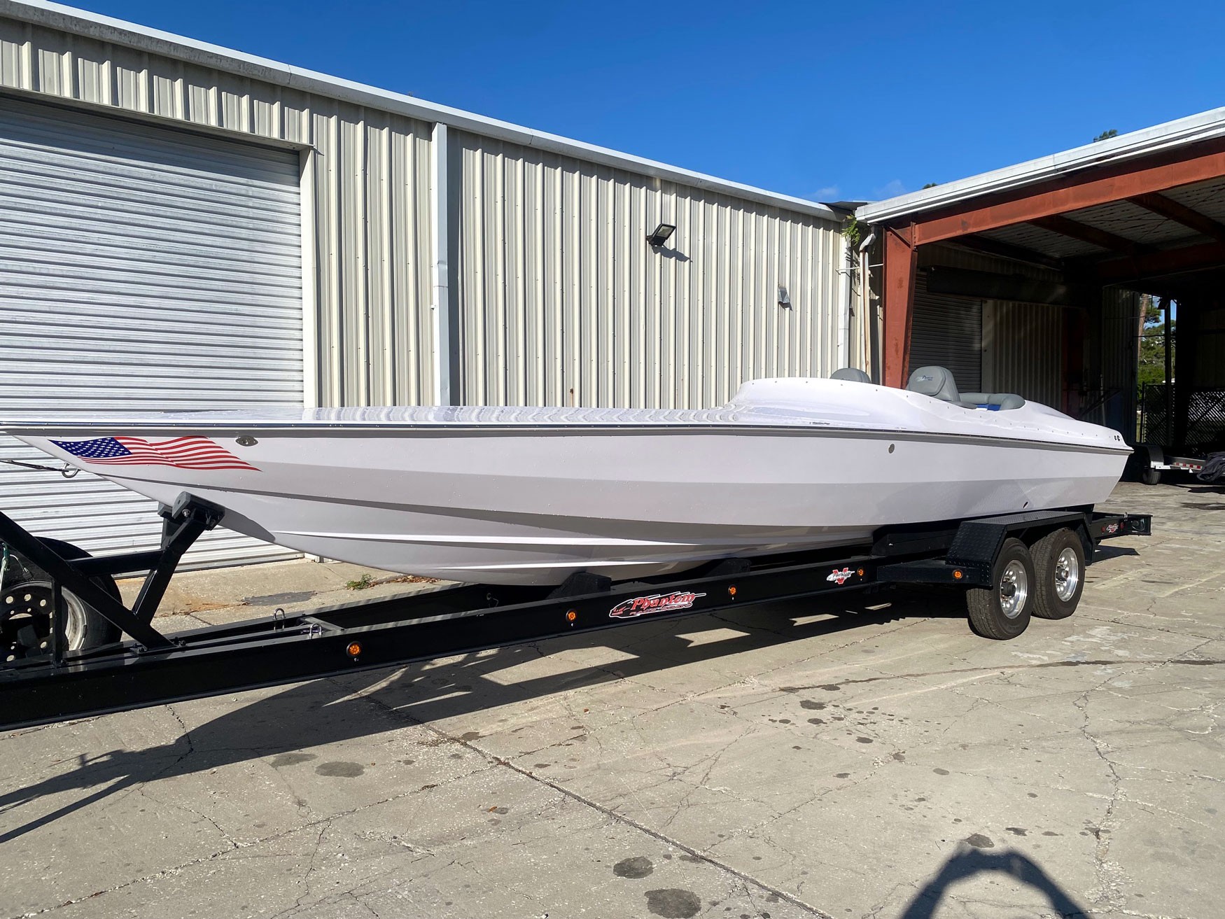 Powered by the incredible Mercury Racing 565 engine with power going through a Mercury Racing XR outdrive. This 30 Phantom I/O is engineered to deliver unparalleled speed and responsiveness, making it perfect for adrenaline-pumping adventures. Whether you're carving through waves or cruising at top speeds, this boat provides the ultimate performance experience.